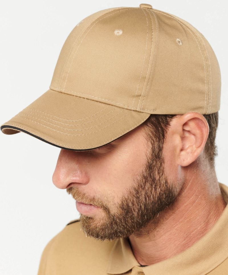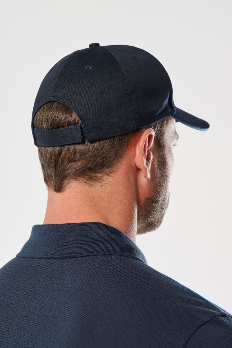 Sandwich in Kontrastfarbe, gestickte Luftlöcher, Grössenregulierung durch Klettverschluss, pflegeleichter Stoff, widerstandsfähig, TearAway Label
