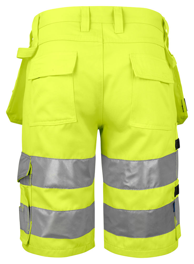 Modern geschnittene warnschutz Shorts mit Hängetaschen. Gesässtaschen mit Patte und Klettverschluss.