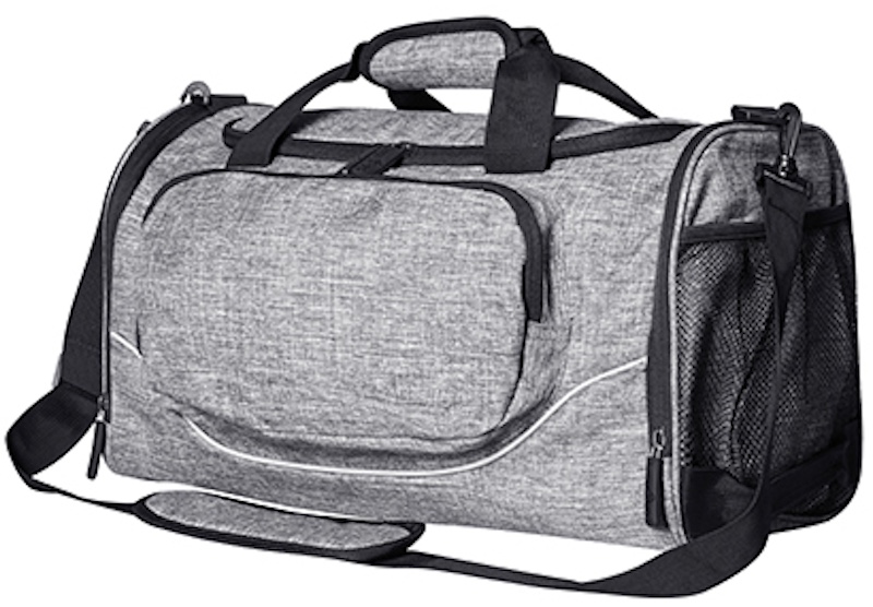 600D Polyester Allround Sporttasche in Grey Melange Material: 100% Polyester Ein Hauptfach mit langem Reißverschluss in U-Form, eine Reißverschluss-Tasche auf der Front, Zwei Reißverschluss-Seitentaschen, davon eine als Wäsche-/Schuh-Fach zu benutzen, alle Reißverschlüsse in Schwarz, Gummi-Zipp-Puller mit „bags2GO“-Prägung, abnehmbarer und längenverstellbarer Umhänge-Tragegurt mit flexiblem Schulterpolster und Metall-Karabiner-Haken zur Befestigung, zwei Trageriemen mit gepolstertem Klett-Handgriff, zusätzlicher Handgriff an der Seite, Verstärkte Unterseite aus PU mit vier Bodenstollen, Volumen: ca. 58 Liter, Lieferung ohne Inhalt/Deko Größe: 58 x 25 x 30 cm