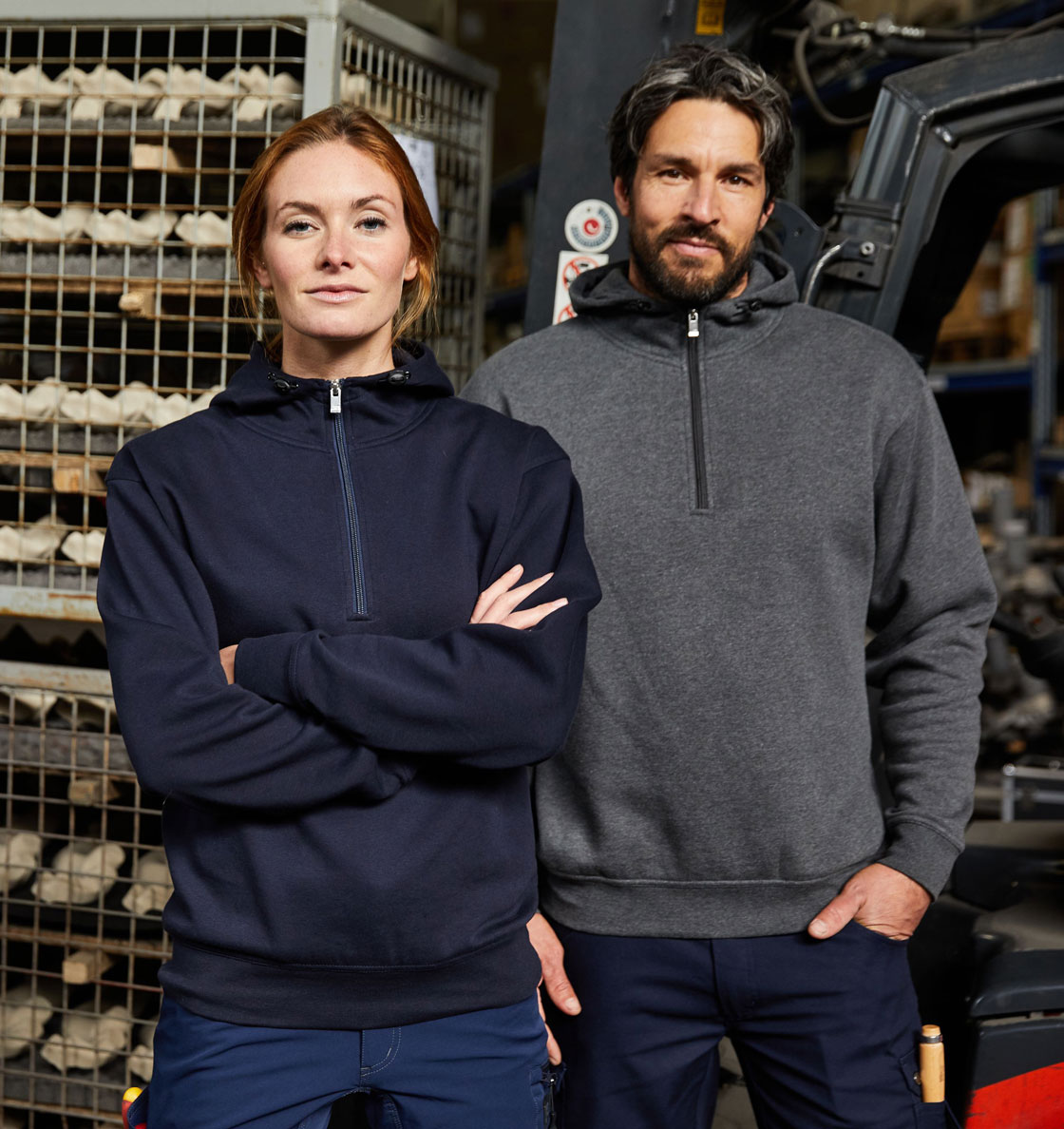 Bio Workwear Halfzip Kapuzen Sweater