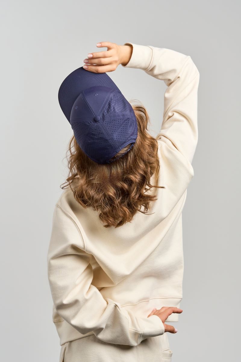 Nachhaltiges Nachfolge-Modell zu Breezy (Artikel: 33.6040), recycelter Buckram, Schirminnenseite aus recyceltem Plastik, umweltfreundliche wasserabweisende Ausrüstung (PFC frei), Dry-Tech Schweissband aus recyceltem Polyester, Frontpanele laminiert, gelaserte Luftlöcher, recycelter Snapverschluss, leicht glänzender Stoff, TearAway Label, Handwäsche, nicht bügeln, nicht trocknergeeignet, nicht chemisch reinigen