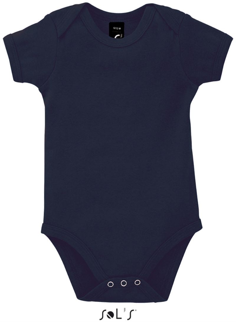 1x1 Feinripp, dehnbar, überlappender, bequemer Halsausschnitt, Rippeinfassung an Hals, Arm und Bein, Druckknöpfe im Schritt