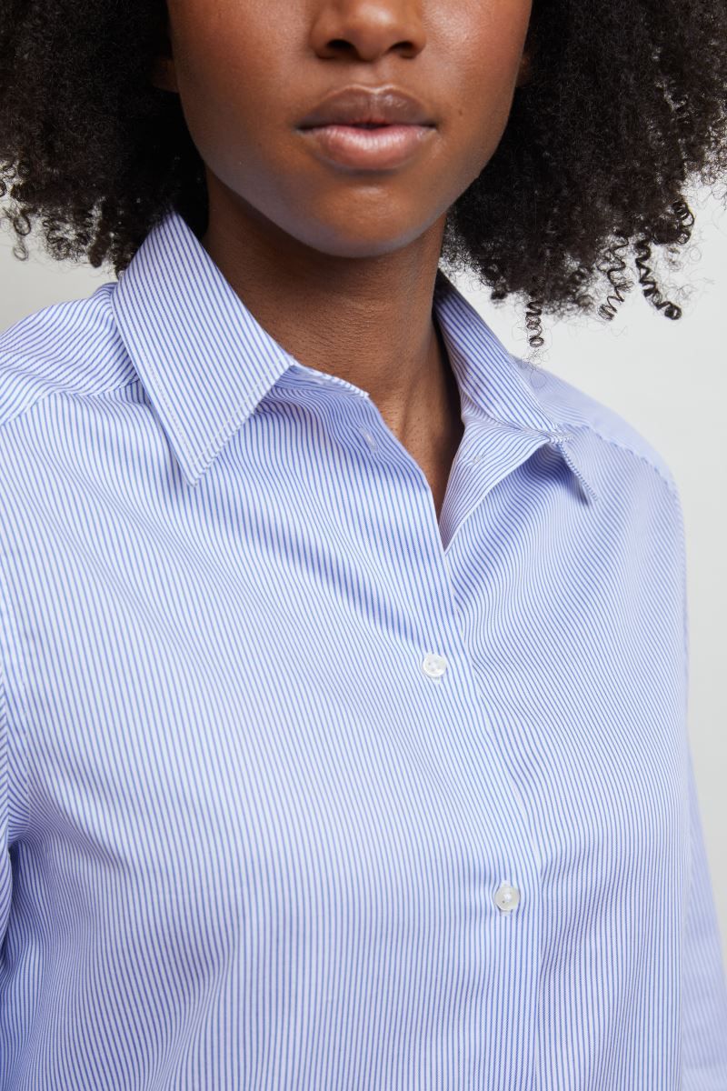 Italienischer Kragen mit einem Knopf, stäbchenverstärkter Kragen, verstellbare Manschetten, Rückenpasse, Rückenfalten an Rückenpasse, TearAway Label, neutrales Grössenlabel, 40° waschbar, Easy Care, trocknergeeignet bei niedriger Temperatur, Knitterschutz Vorbehandlung