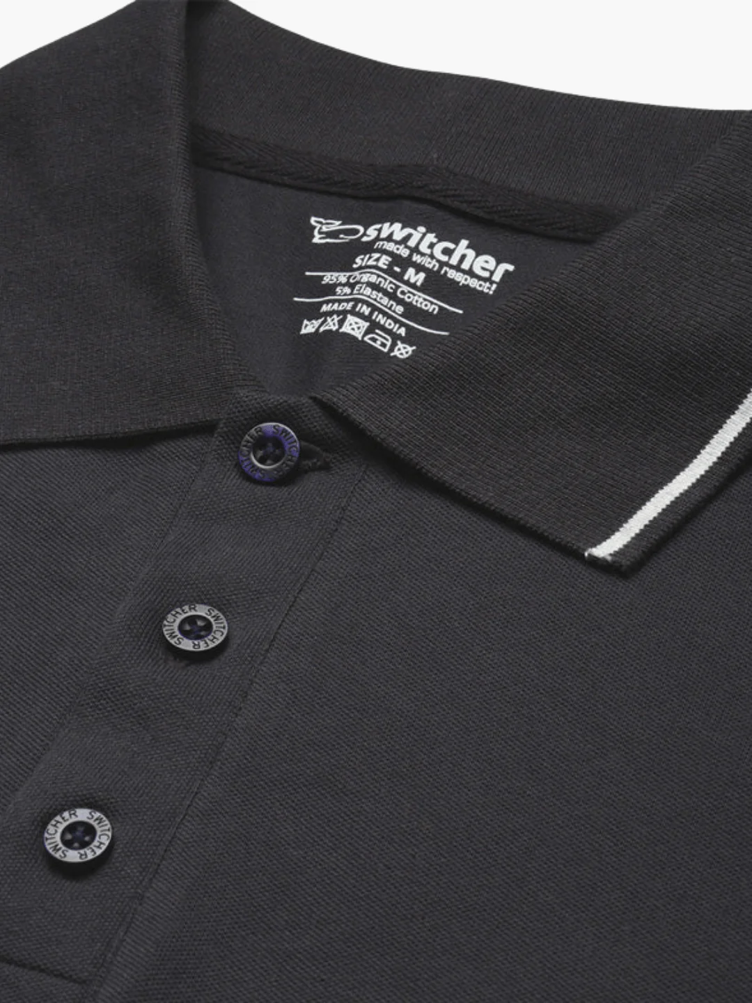Die 3er-Knopfleiste verleiht einen klassischen Touch, während der Kragen mit einer stylishen Two-Tone-Streifenlinie für das gewisse Extra sorgt. Das Switcher Ben Polo – der Inbegriff von Stil und Komfort für den modernen Mann. Erleben Sie Qualität, die überzeugt – schlicht, elegant, Switcher.
