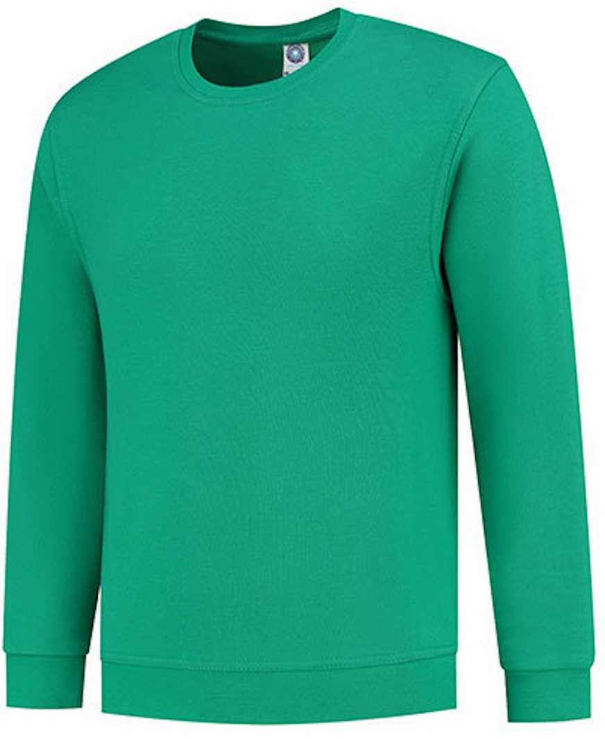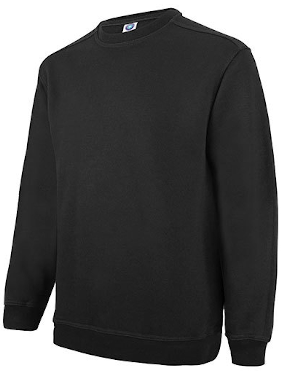 Gekämmte Baumwolle, Innen angeraut, Schlauchware, Set-In-Ärmel, Doppelnähte, Nackenband, schwere Ripp-Bündchen an Ärmeln und Saum, vorgeschrumpft mit Antipilling-Ausstattung, Waschbar bis 40 °C, SEDEX geprüft