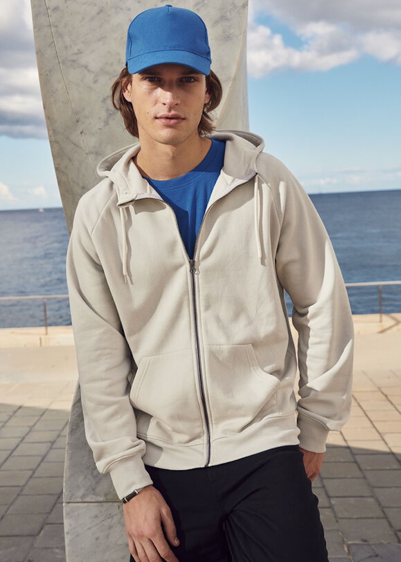 Er verfügt über Raglanärmel, eine Kängurutasche und eine Schutzlasche am oberen Ende des Metallreissverschlusses. Der Hoodie hat eine doppelte Stofflage für zusätzliche Stabilität. Die Kordelenden und Ösen sind aus Metall gefertigt. Der elastische 2x2-Rippstrick ist mit einfacher Naht am Halsausschnitt, an den Ärmelbündchen und am Saum versehen. Inklusive Nackenband aus Twill in Kontrastfarbe, einer Aufhängeschlaufe und einem leicht entfernbaren Etikett für Rebranding-Zwecke. Der weiche, stabilisierte Stoff ist für häufiges Waschen ausgelegt und besitzt Anti-Pilling-Eigenschaften.