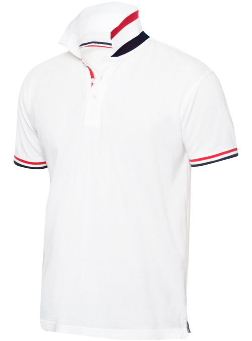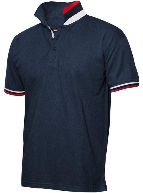 Kontraststreifen an Ärmeln, Kragen, Knopflochleiste und Seitenschlitzen.