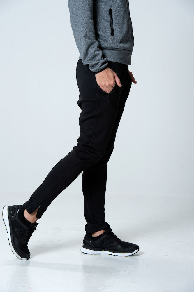 2 Fronttaschen, 1 Gesässtasche und Beinabschluss mit Reißverschlüssen.