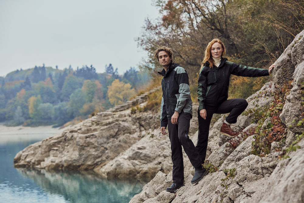 Wasserdichte Reissverschlüsse, verklebte Nähte, Mesh Innenfutter und Belüftungen sowie Grössenanpassungen an Hüfte und Beinen.