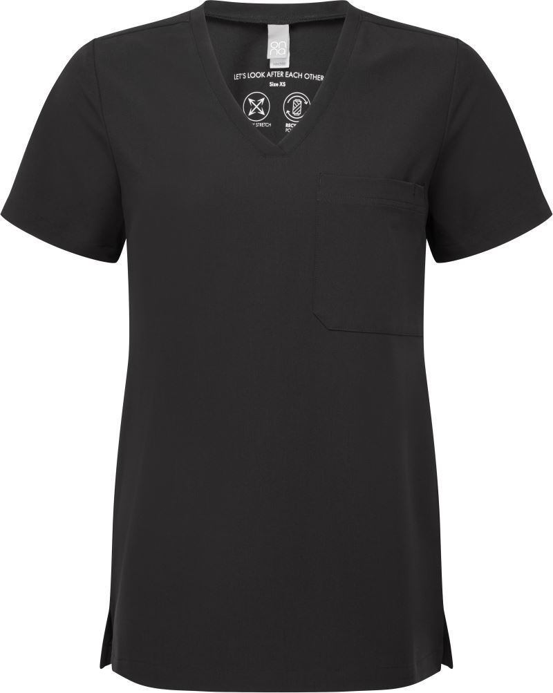 Atmungsaktiv, V-Ausschnitt, Brusttasche links, Seitenschlitze, Abnäher am Rücken, 4-Wege Stretchmaterial, strapazierfähiges Material, knitterfrei, pflegeleicht, feuchtigkeitsregulierend, 40° waschbar, trocknergeeignet bei niedriger Temperatur, nicht chemisch reinigen