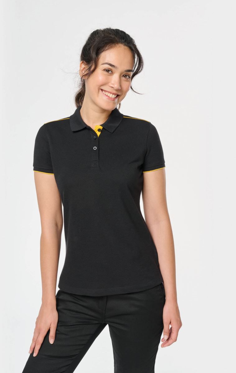 Damen Workwear Piqué Polo "Day-to-Day" Material: 220g/m², 65% Polyester, 35% gekämmte Baumwolle 3er Knopfleiste mit Knöpfen Ton-in-Ton, Knopfleiste innen in Kontrastfarbe, Strickbündchen am Ärmel, Doppelnähte am Saum, Seitenschlitze mit kontrastfarbenem Fischgrätband, Paspel in Kontrastfarbe an Schultern, Ärmelbündchen und Krageninnenseite, Antipilling Vorbehandlung, 60° waschbar, trocknergeeignet bei niedriger Temperatur, nicht chemisch reinigen Grössen: XS – 3XL