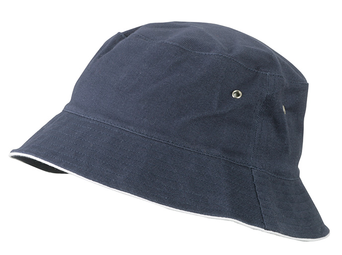 Paspel an Krempe teilweise kontrastfarbig, 4 Metallösen, 8 Ziernähte auf der Krempe, gefüttertes Satinschweißband