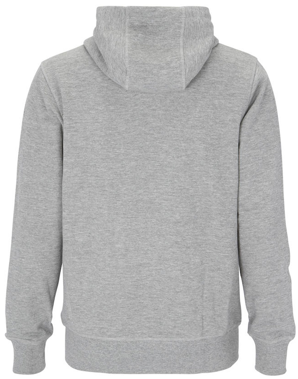 Rippbündchen 2x2 an den Ärmeln und am unteren Rand. Kapuze mit Doppelnaht und Kordel.