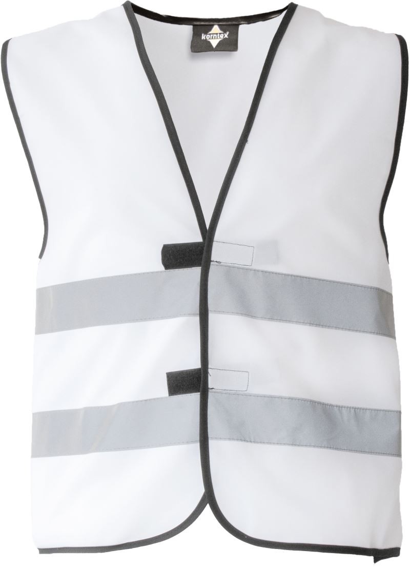 Material: 120 g/m², 100% Polyester Korntex® Kinder-Funktionsweste, Saumnähte mit schwarzer Polyestereinfassung - Korntex Style, zwei 5 cm breite Reflektions-Streifen um den Körper, größenverstellbar durch 2 Klettverschlüsse, mit EAN Barcode ausgestattet, einzeln in Polybeutel verpackt, 40 °C waschbar Größen: XXS (3-4 Jahre), XS (3-6 Jahre), S (7-12 Jahre)