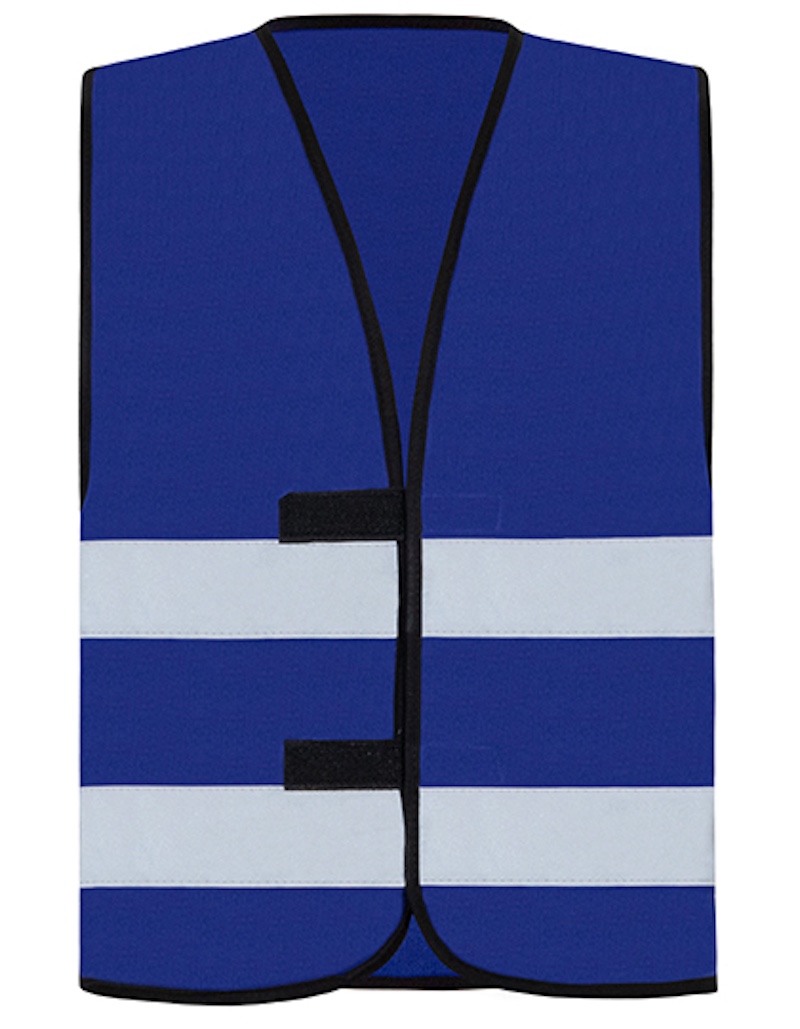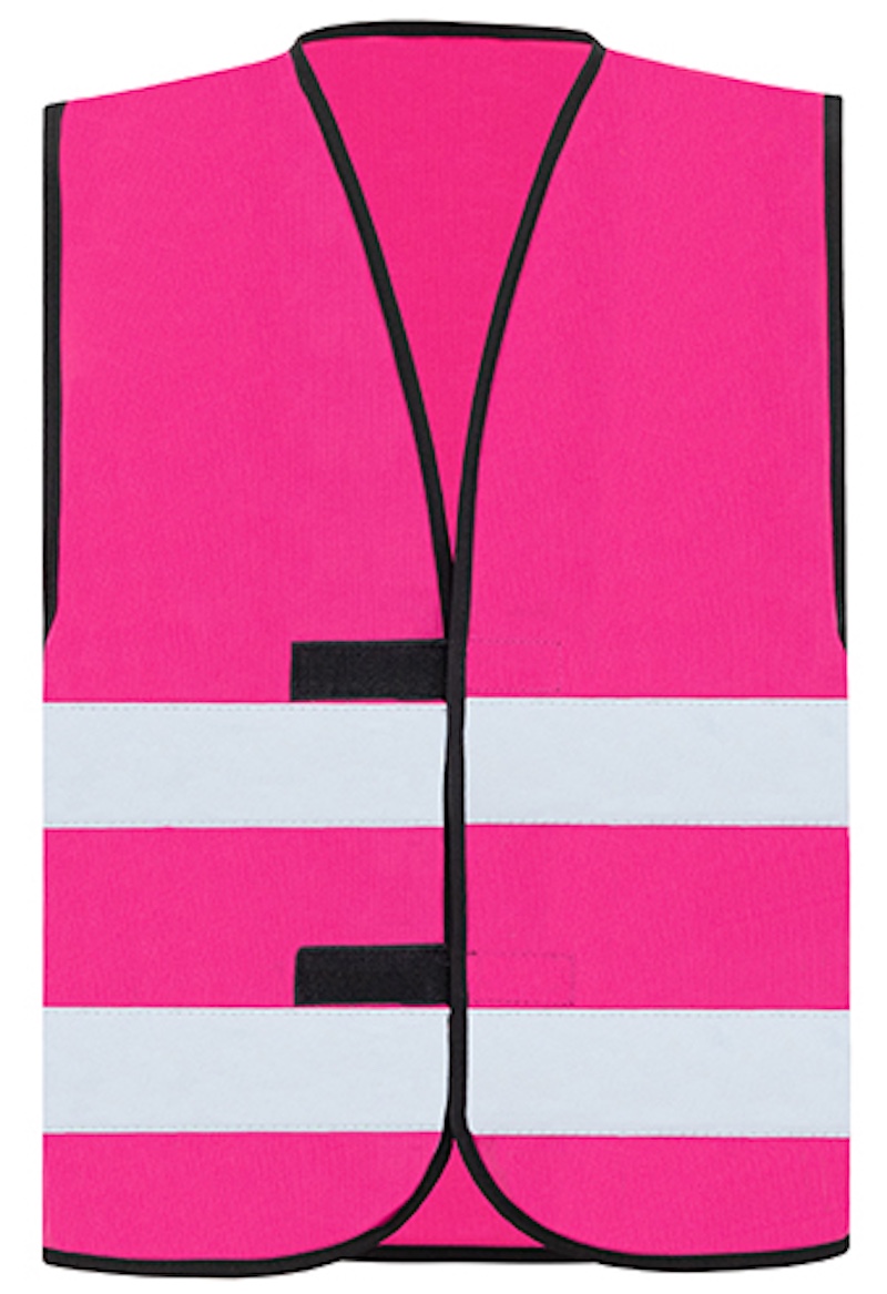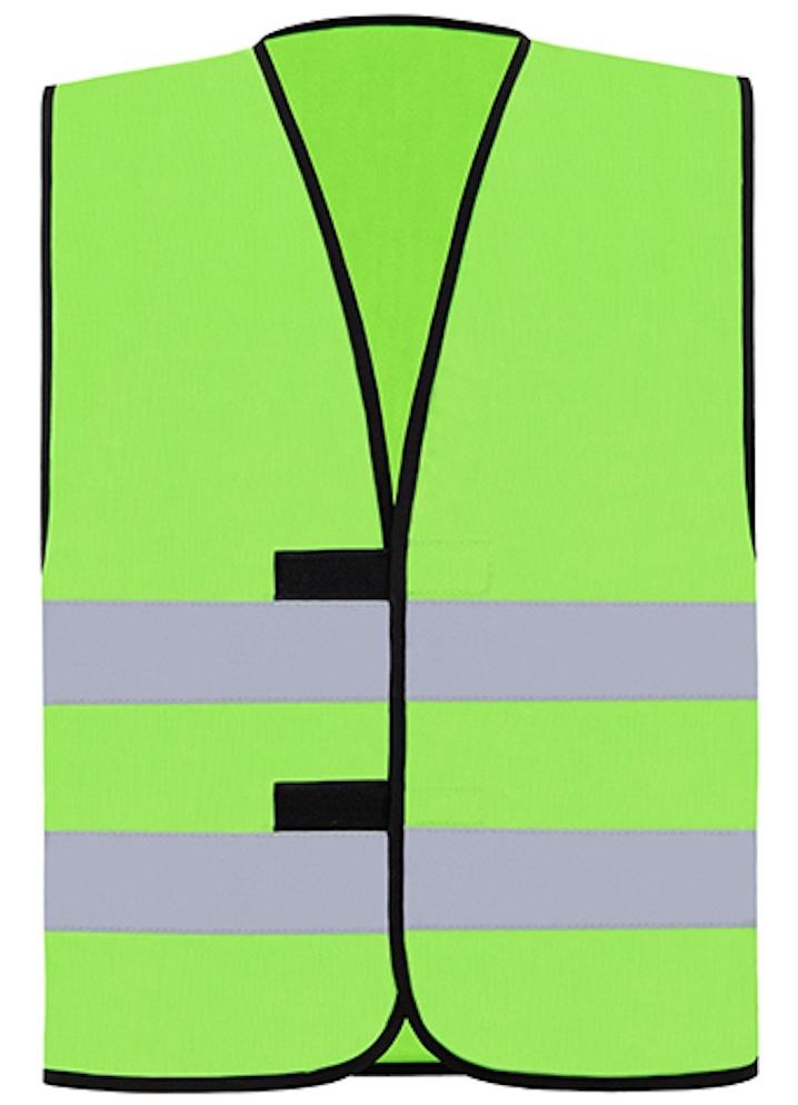 Basic Warnweste Material: 100% Polyester Zwei 5cm breite Reflexstreifen, umsäumt mit schwarzer Polyestereinfassung, Grössenverstellung durch zwei Klettverschlüsse, zertifiziert nach EN ISO 20471:2013 Grössen: S – 5XL