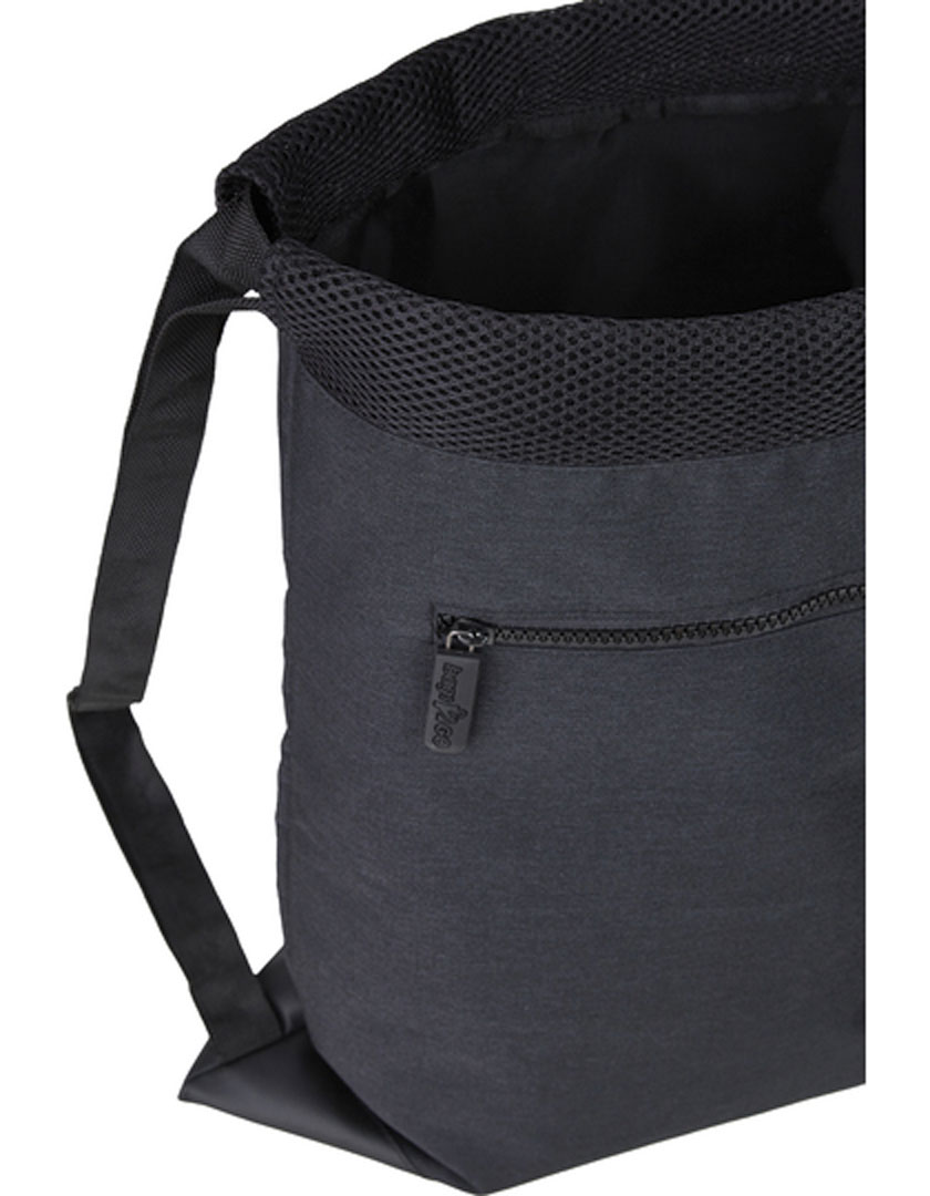 600D Snowflake Ripstop/PU Turnbeutel in Black Melange, ein Hauptfach, das durch Zuziehen der seitlichen Schulter-Trageriemen verschlossen wird, ein Frontfach mit Reißverschluss, obere Abschlusskante aus Air-Mesh, untere Abschlusskante aus PVC, alle Reißverschlüsse in Schwarz, Gummi-Zipp-Puller mit "bags2GO"-Prägung, Volumen: ca. 3 Liter
