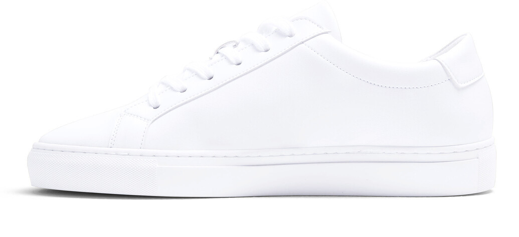 Zunge und Schaftrand gepolstert. Herausnehmbare leicht gepolsterte PU-Schaumstoff-Innensohle aus recycelten Kunststoffen. Obermaterial Apfelleder aus Produktionsabfällen der Apfelindustrie und geriffelte Laufsohle aus Gummi mit Recyclinganteil. Verfügbar auch als Unisexmodell.