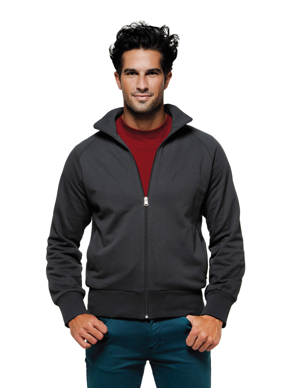 Sportive Sweatjacke im College-Stil, mit hochwertigem Frontreißverschluss von YKK®, formstabilen Bündchen mit LYCRA®-Anteil, Raglanärmeln, Teilungsnähten mit dekorativer Flatlock-Steppung, nicht angerauter Innenseite (French-Terry), Nackenband und zwei praktischen seitlichen Einschubtaschen. Hergestellt aus pflegeleichter Baumwolle-Polyester-Mischung für höchste Ansprüche. Gewebtes HAKRO-Necklabel aus hochwertigem Kettsatin mit weichen, ultraschallgeschnittenen Bandkanten für höchsten Tragekomfort und gewebtes HAKRO-Flaglabel an der linken Seitennaht.