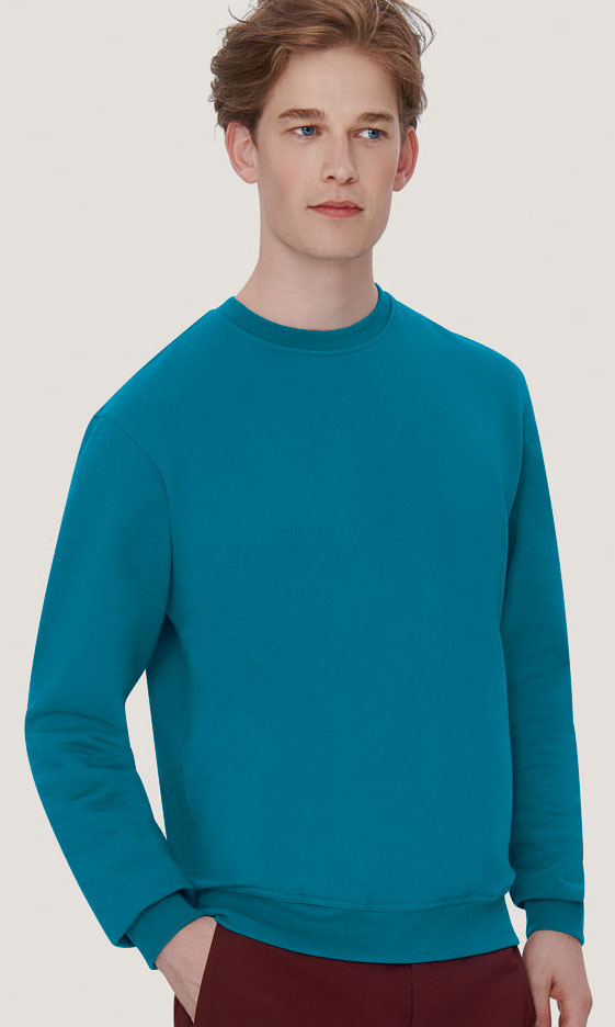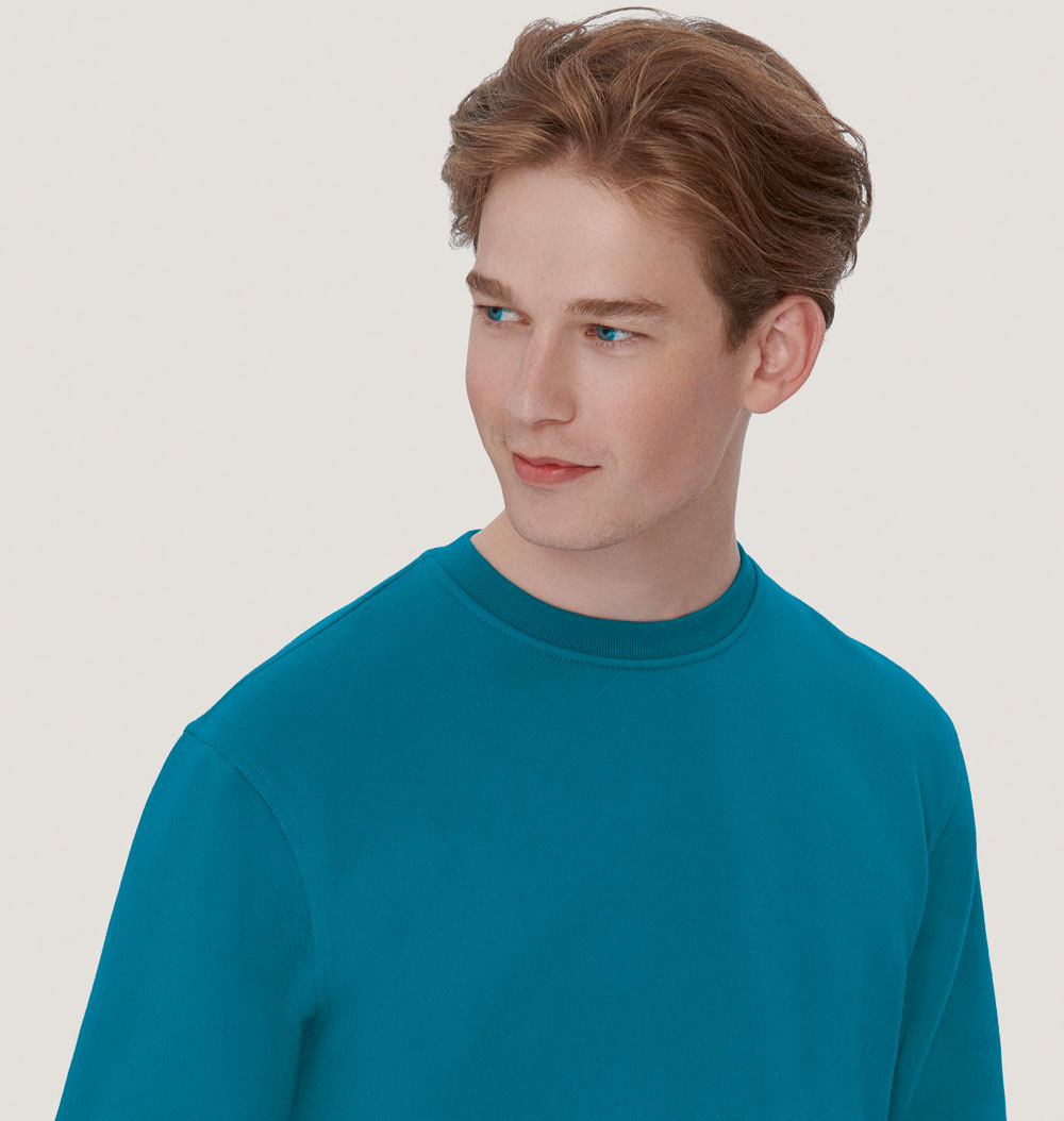 Klassisches Sweatshirt mit rundem Halsausschnitt, formstabilen Bündchen mit LYCRA®-Anteil, flauschig angerauter Innenseite und Nackenband. Hergestellt aus pflegeleichter Baumwolle-Polyester-Mischung für höchste Ansprüche. Gewebtes HAKRO-Necklabel aus hochwertigem Kettsatin mit weichen, ultraschallgeschnittenen Bandkanten für höchsten Tragekomfort und gewebtes HAKRO-Flaglabel an der linken Seitennaht.