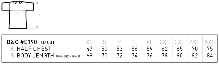 Material: 175 g/m², 100% Baumwolle (Sports Grey: 90% Baumwolle / 10 % Viskose) 100% gekämmte, ringgesponnene Bio-Baumwolle, Kein B&C Nacken-Label, Bequeme Länge, Seitennähte, Legerer Medium-Fit, Schmaler Kragen aus Rippstrick, Verstärkung im Nacken mit einem weichen Kantenband, Bio-Jersey, Weiche und ebenmäßige Oberfläche, OCS-100 und Oekotex-100 zertifiziert Größen: XS, S, M, L, XL, XXL