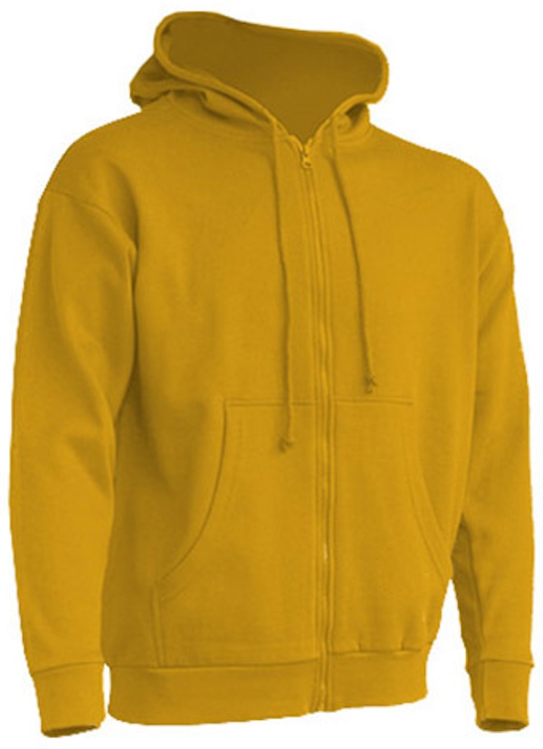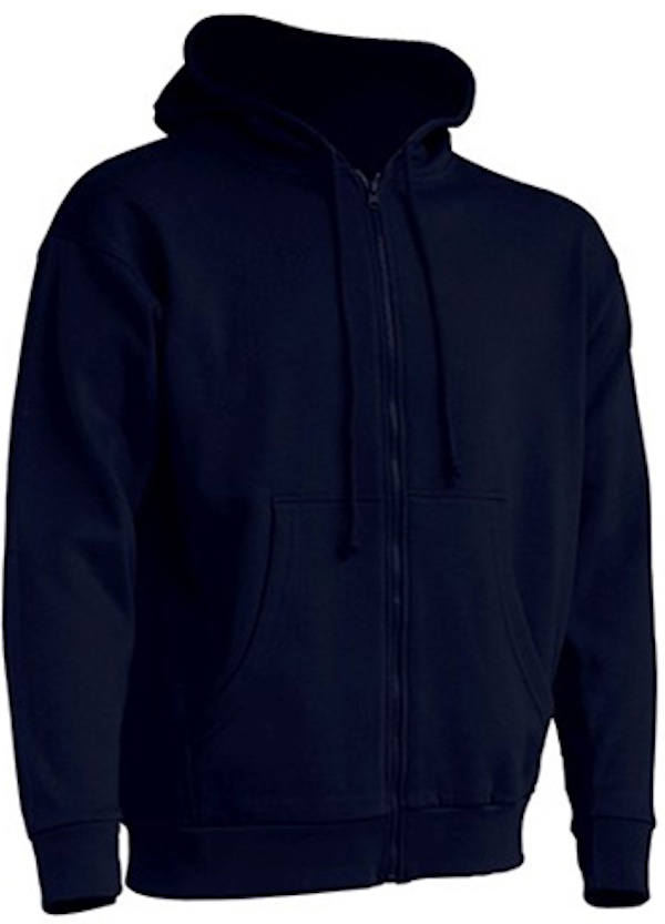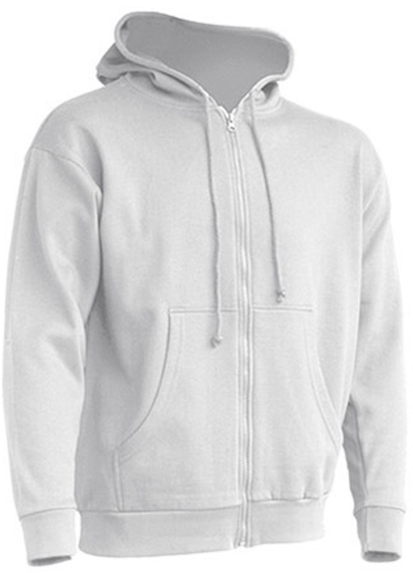 Durchgängiger Reißverschluss in passender Farbe, Kordeln in passender Farbe, Kängurutaschen, 1x1 Lycra Ripp-Strick-Ärmelbündchen und Bund unten mit doppelten Nähten
