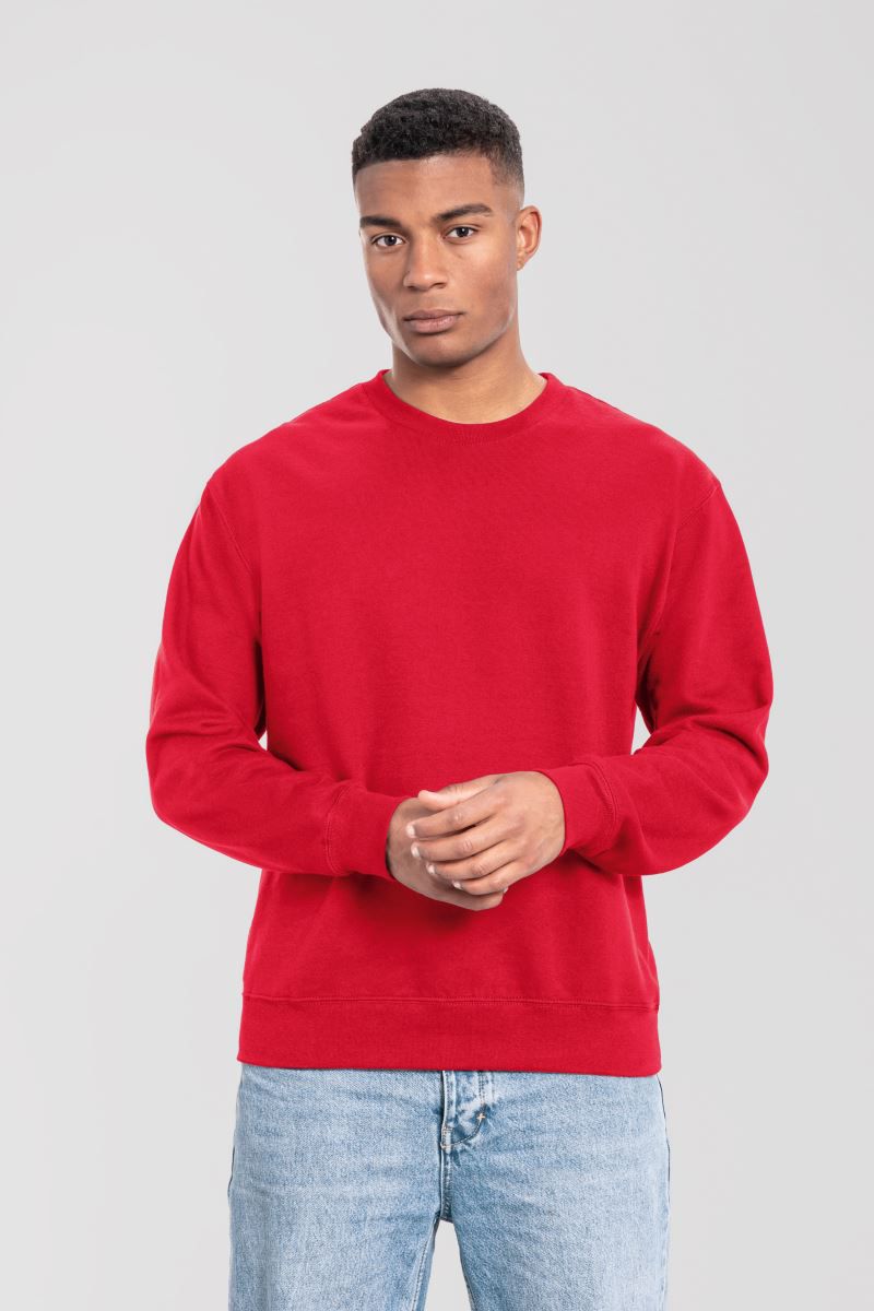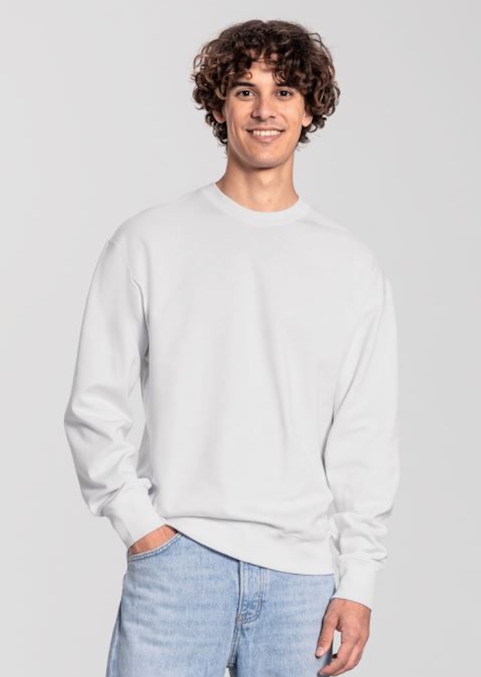 Klassischer Schnitt, Rundhalsausschnitt aus Rippstrick, Rippstrickbündchen an Ärmeln und Saum mit Lycra®, Oberfläche aus 100% Baumwolle, innen angeraut, Verwendung nachhaltiger CiCLO®-Fasern, Tear Away Label, 40° waschbar, trocknergeeignet bei niedriger Temperatur