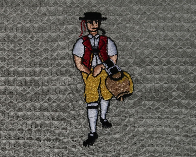 Besticktes Küchentuch in 2 Farben erhältlich. Das Stickerei ist ein mehrfarbiges Motiv von einem Senn.