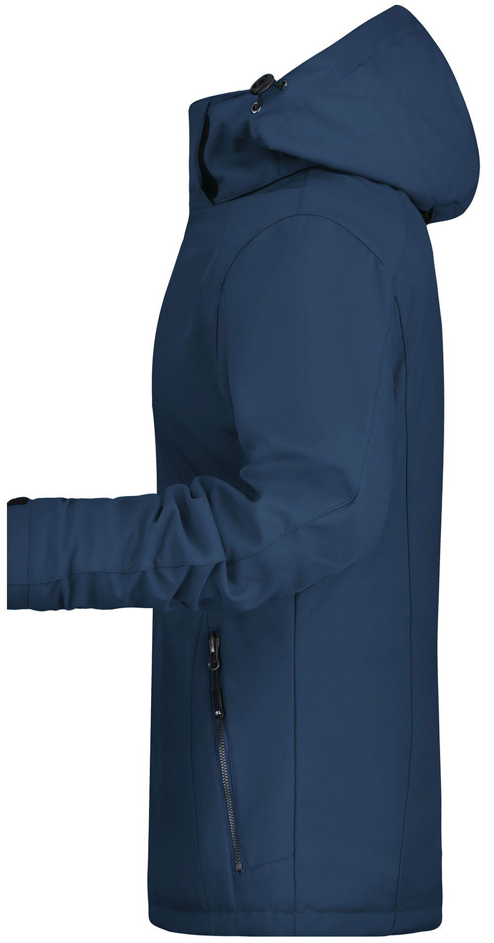Elastische, gefütterte SoftshelljackeOberstoff: 92% Polyester, 8% Elasthan Futterstoff: 100% Polyester Wattierung: 100% PolyesterWind- und wasserdichtes 3-Lagen Funktionsmaterial mit PU-Membran (5.000 mm Wassersäule)Atmungsaktiv (2.000 g/m²/24h)Abzippbare, gefütterte Kapuze mit mehrfacher WeitenregulierungDurchgehend unterlegter Frontreißverschluss mit KinnschutzUnterarmreißverschlüsse für zusätzliche Belüftung2 seitliche Taschen mit Reißverschluss, kleine Ärmeltasche mit ReißverschlussInnentasche mit Reißverschluss, Handytasche innenRegulierbarer Schneefang, DaumenschlupfElastische Kordel mit Stopper an Saum und Kapuze