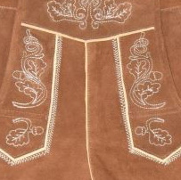 Traditionelle 3/4 lange Damen Lederhose, inklusive Träger und Brustschild, Stickereien an den Seiten und vorne