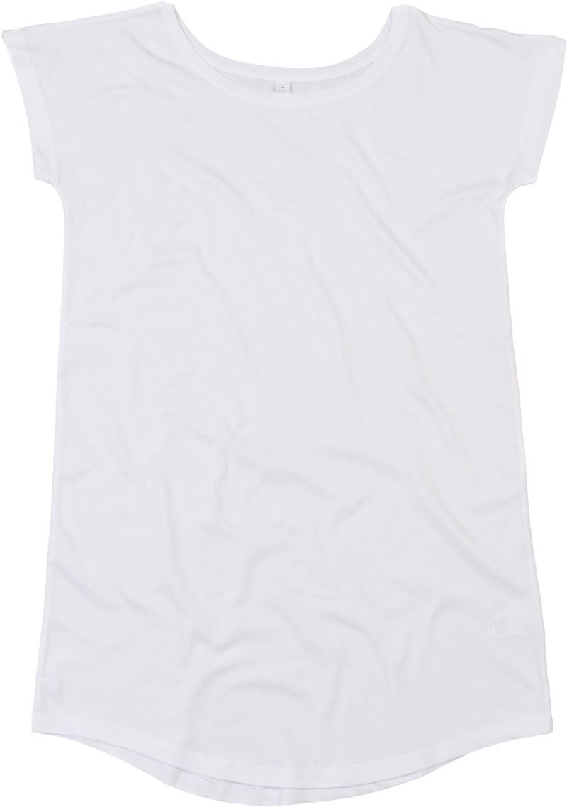 Lockerer gerader Schnitt, weiter Ausschnitt, TearAway Label, Flügelärmel ohne Schulternaht, abgerundeter Saum, endet oberhalb der Knie