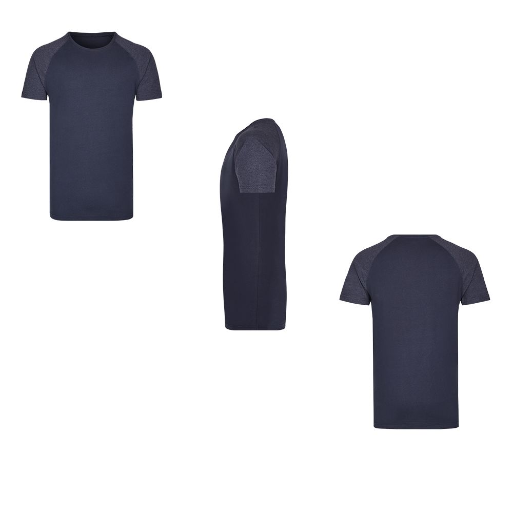 Ringgesponnene Baumwolle , Modern Fit, Längere Passform, Rundhalsausschnitt, Modische schmaler Kragen, Nackenband, Neutrales Größenetikett im Kragen, seitlich versetzt, Entfernbares miners mate-Etikett, Raglan-Ärmel, Seitennähte, Doppelnähte, Einlaufvorbehandelt, Enzym- und silikongewaschen, Öko-Tex Standard 100 zertifiziert, Waschen 40°C