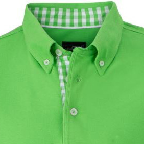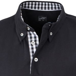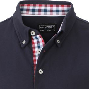 Damen-Polo mit modischem Karo-Einsatz Material: 195 g/m², 100% Baumwolle, gekämmt Feine klassische Piqué Qualität, Konfektionierter Kragen, Karobesatz in Kragensteg, Knopfleiste innen und Seitenschlitzen, 4 Knöpfe in Kontrastfarbe, Halbmond Ton in Ton Grössen: S - XXL