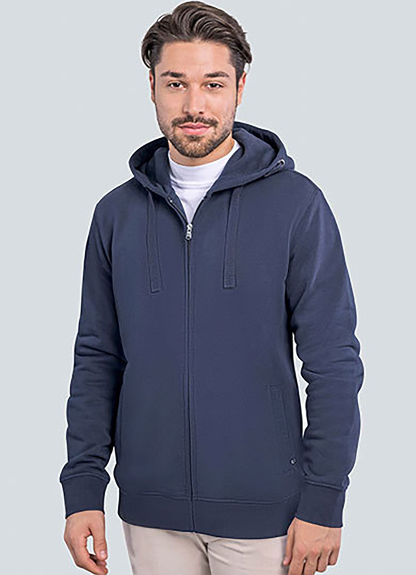 Saum, Taschenabschluss und Ärmelbund sind mit hochwertigem 1x1-Rippstrick versehen