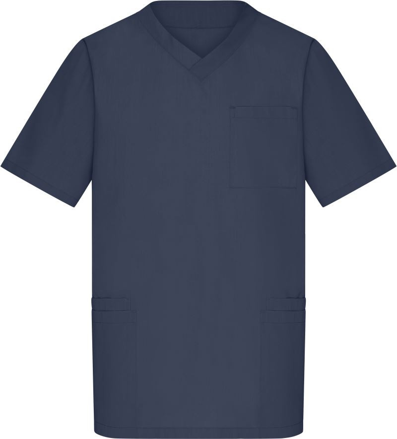 Leicht taillierter Schnitt, 2 grosse Seitentaschen, 2 kleine Seitentaschen, Brusttasche, Seitenschlitze, 95° waschbar, trocknergeeignet