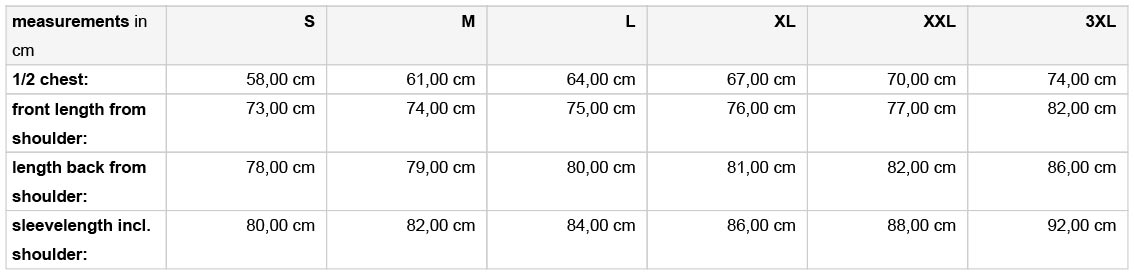 Abzippbare, gefütterte und wattierte Kapuze, wärmender Fleecekragen, Unterarmreißverschlüsse für zusätzliche Belüftung, durchgehende Windschutzblende, Reflexpaspel an Schulter und Fronttaschen, 2 Fronttaschen, 1 Brusttasche, innen Brusttasche und Handytasche, 2-Wege-Reißverschluss, elastische Kordel mit Stopper an Kapuze und Saum, Reißverschluss zur Rückenveredelung