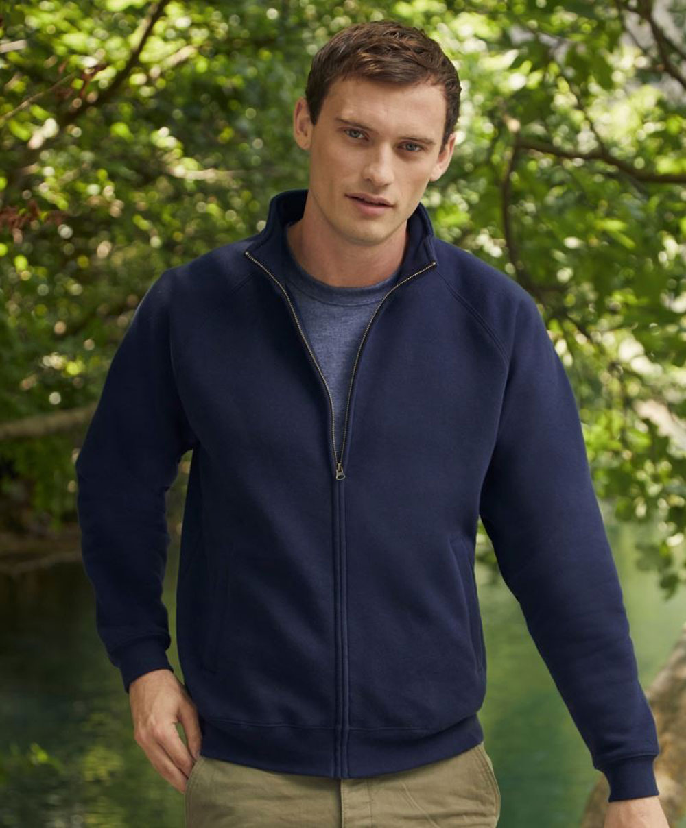 Single Jersey Nackenband, Strickbündchen an Ärmeln und Saum, zwei aufgesetzte Eingrifftaschen, schmaler verdeckter Reißverschluss für bessere Bedruckbarkeit