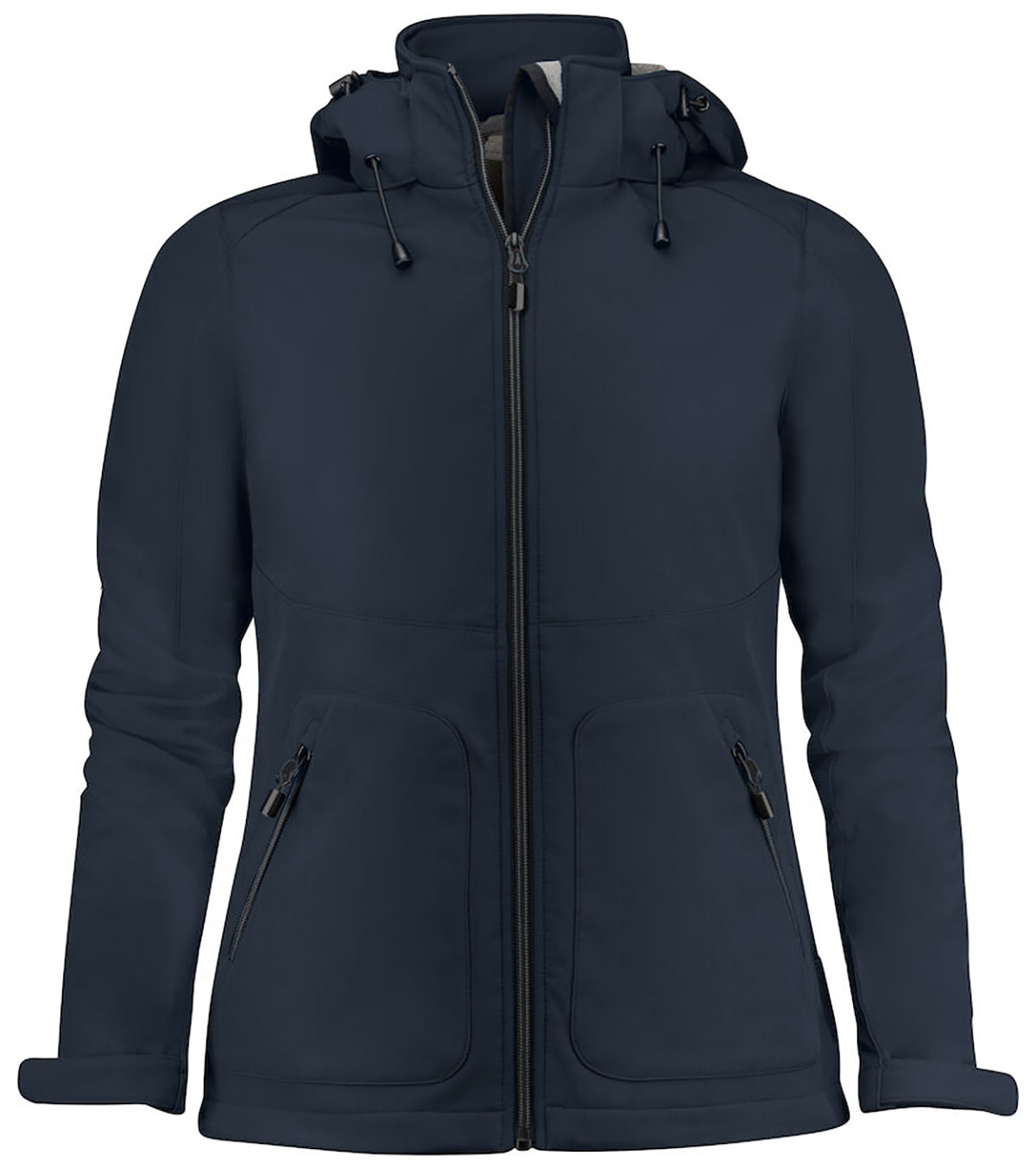 Damen Softshell Jacke mit abnehmbarer Kapuze.