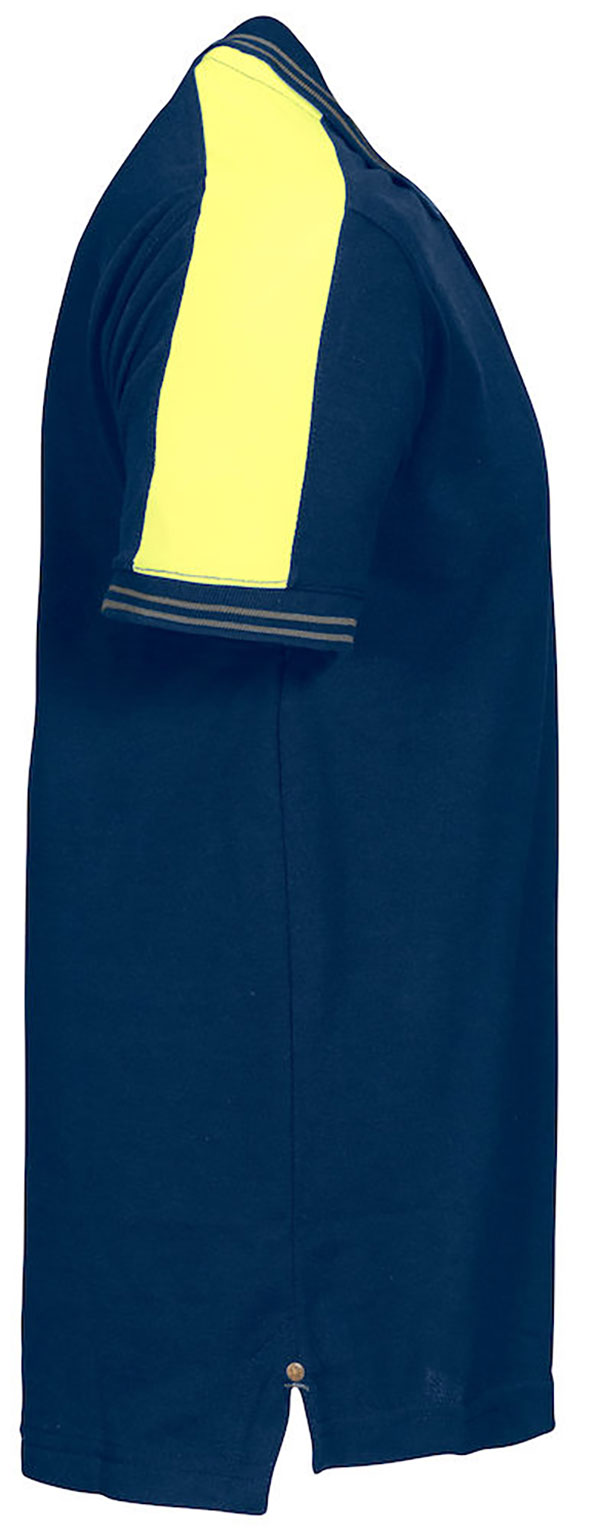Kurzarm Polo Piqué mit Strickkragen und Ärmelbündchen. 3-er Knopfleiste. Fluoreszierendes Material an den Schultern.