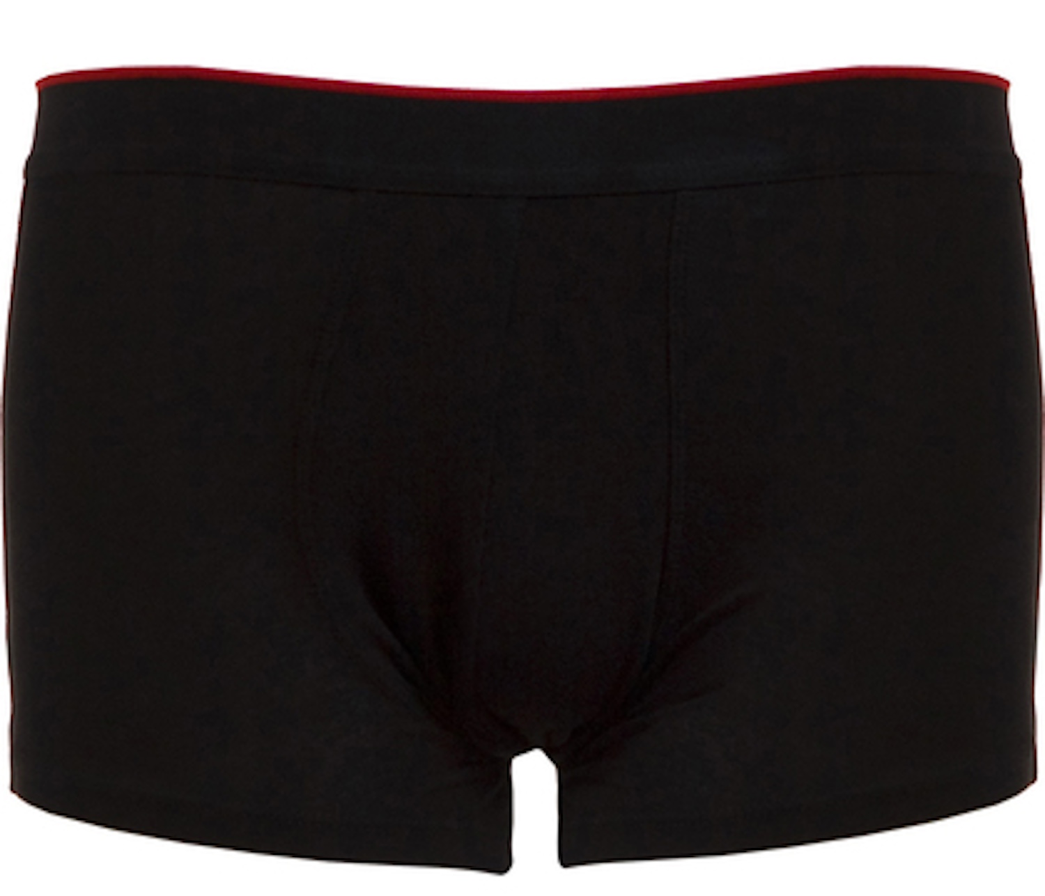 Gummiband mit rotem Kontraststreifen, rote Kontraststreifen an Seitennaht, Single Jersey, 95 % Baumwolle, 5 % Elasthan, 180 g/m², S–XXL.
