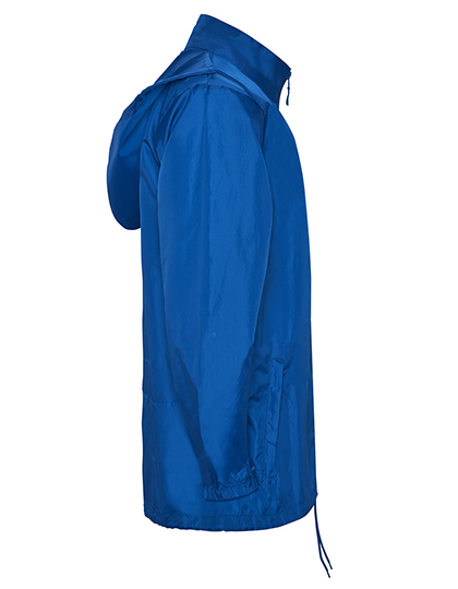 Regenmantel mit durchgehendem Reißverschluss, in Kragen gefaltete Kapuze mit Kordelzügen, zwei Taschen mit Reißverschluss und Klappe, elastische Bündchen, Saum mit verstellbaren Kordelzügen und Stoppern, winddicht, wasserabweisend, entfernbares Etikett