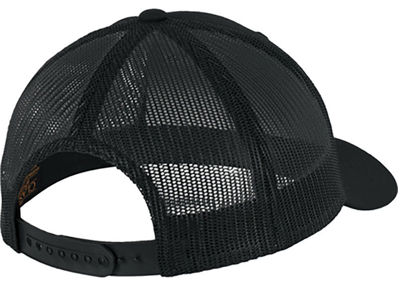 Flache Passform, leicht vorgebogener Schirm, Canvas-Front mit Mittelnaht verstärkt, Rückseite aus Netz, Snap-Verschluss, nicht waschen, nicht bügeln, nicht trocknergeeignet, nicht chemisch reinigen