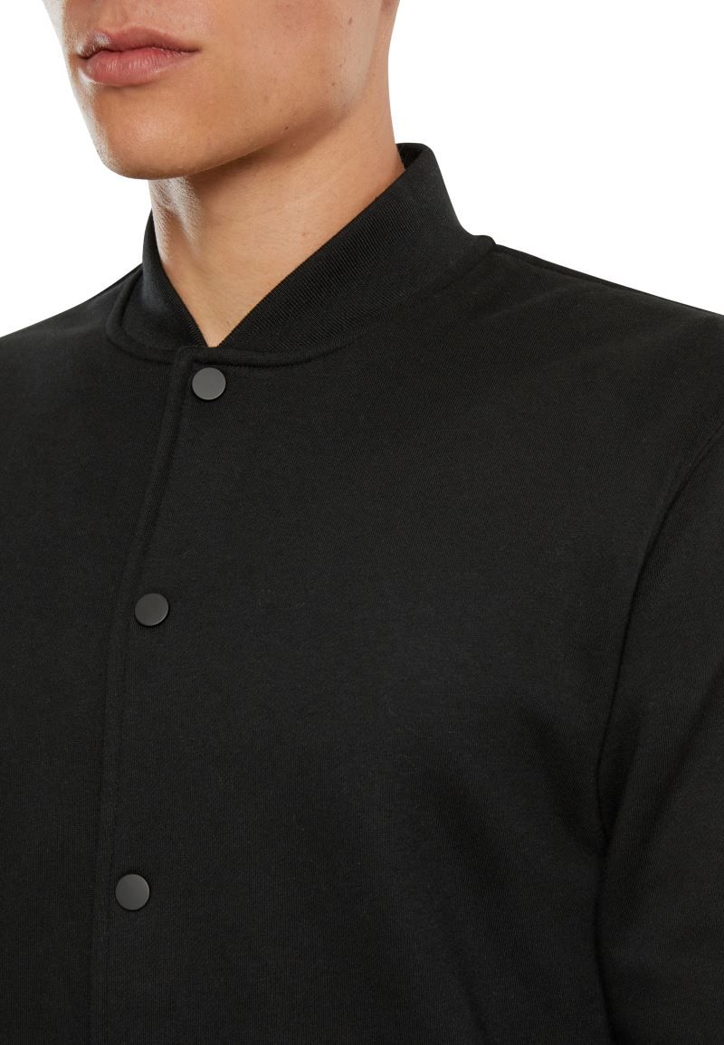 Schmaler Stehkragen, durchgehende Knopfleiste mit Druckknöpfen, 2 Seitentaschen, innen angeraut, neutrales Grössenlabel, 30° waschbar