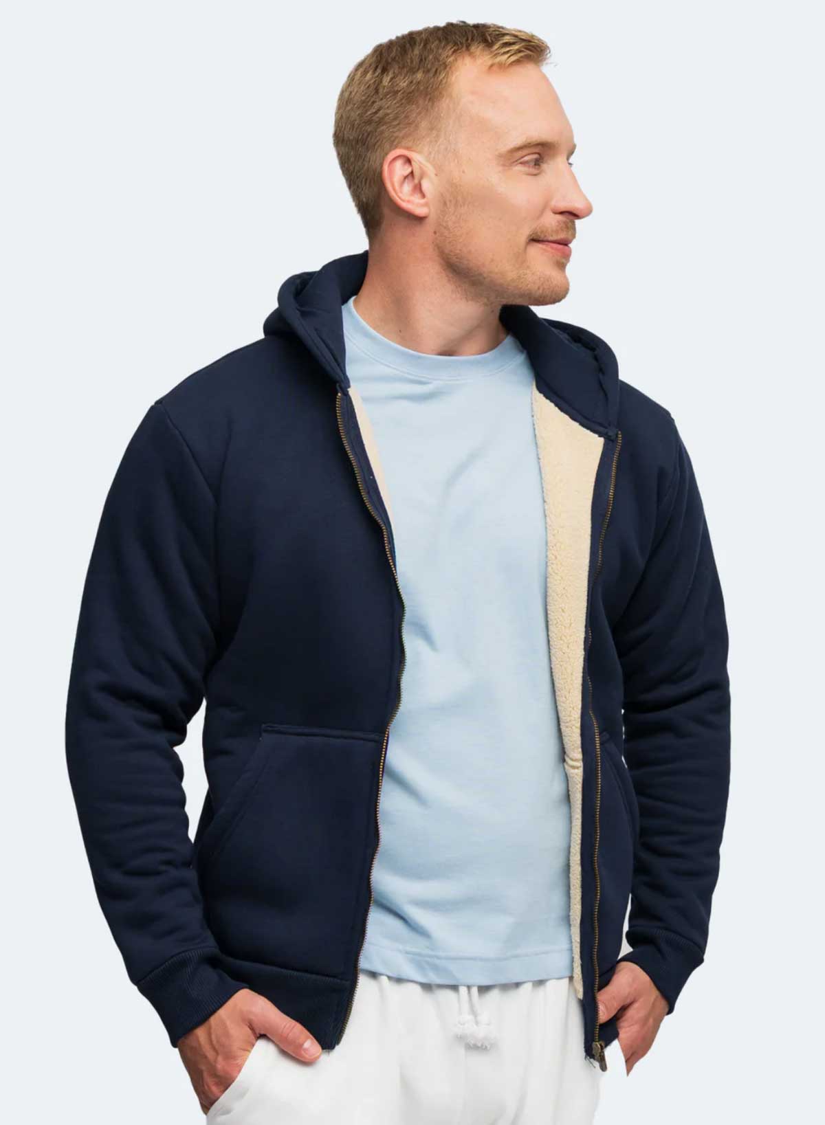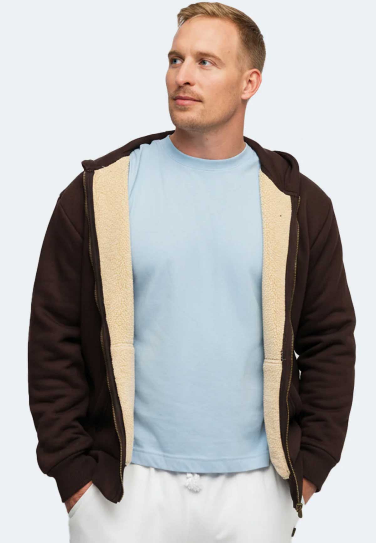 Herren Sherpa Hoodie mit durchgehendem YKK Reissverschluss