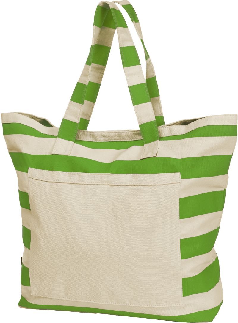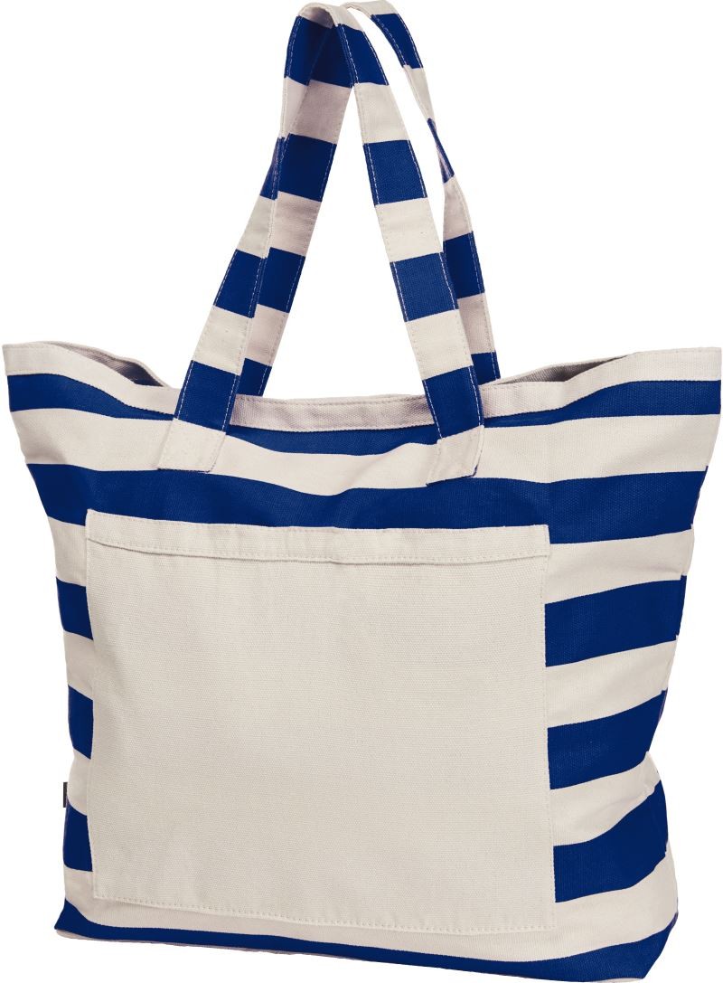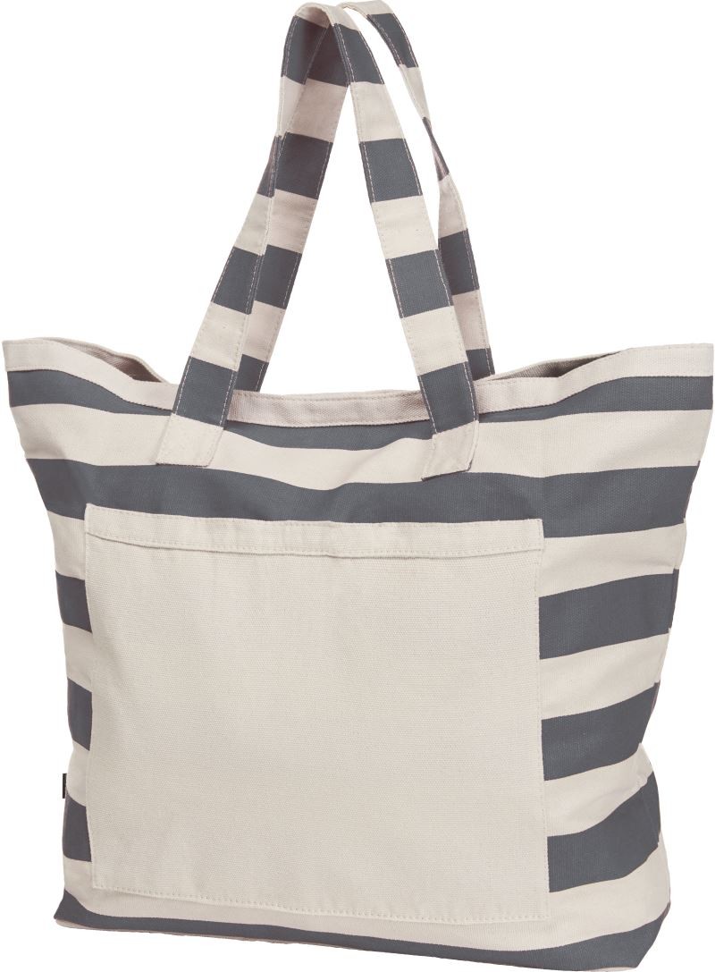 Sehr großer Baumwoll-Shopper, schwere Qualität, großzügiger Schnitt mit großer Vortasche, Klettverschluss, Blockstreifen-Deko