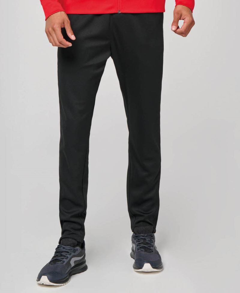 Schmaler Schnitt, Beinabschluss mit Reissverschluss, elastischer Bund mit Kordelzug, 2 Seitentaschen mit Reissverschluss, Doppelnähte am Saum, matte Oberfläche, TearAway Label, 40° waschbar, nicht bügeln, nicht trocknergeeignet, nicht chemisch reinigen