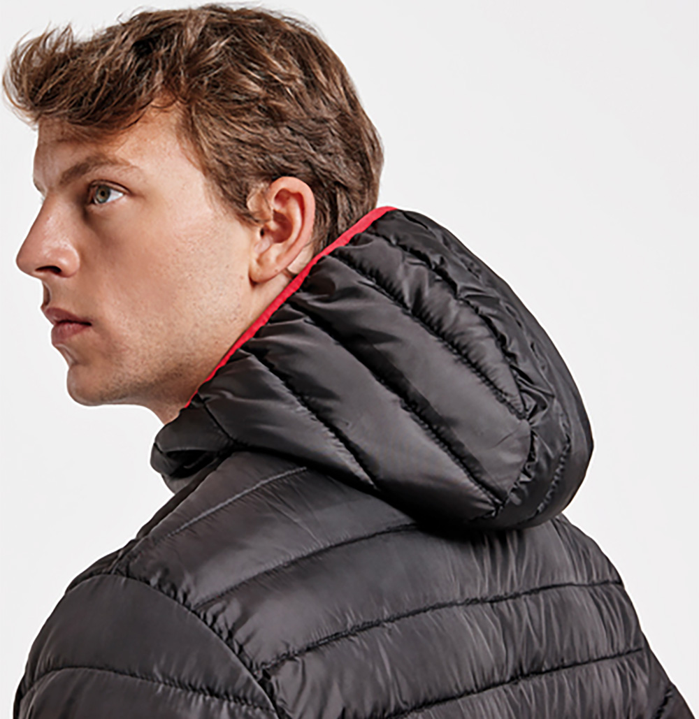 Elastische Stoffeinfassung an Ärmelbündchen, Saum und Kapuze in Kontrastfarbe