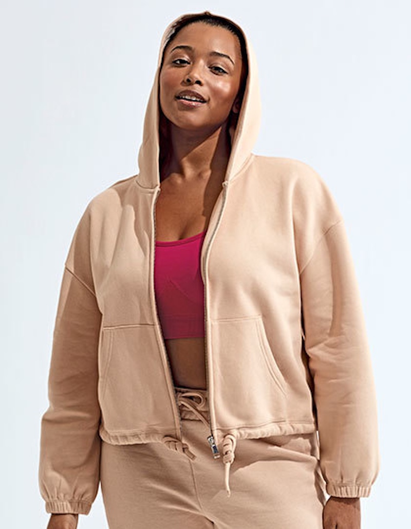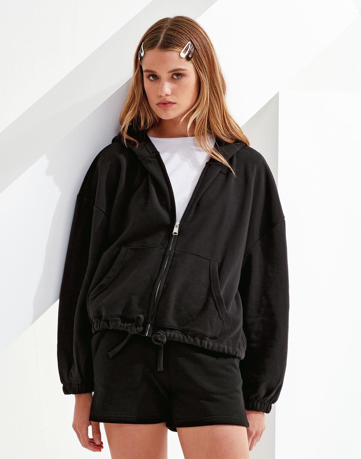 Oversized, verkürzter Hoodie mit Reißverschluss