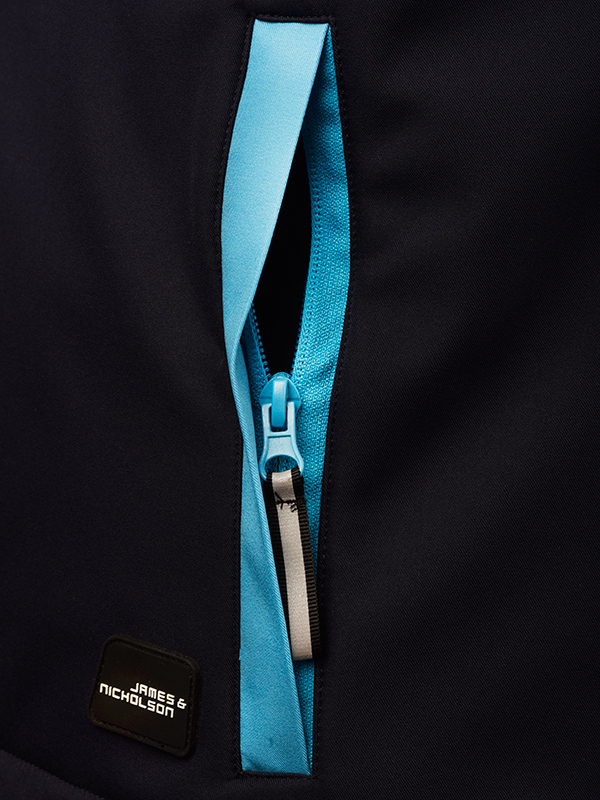 Robustes, strapazierfähiges Softshellmaterial, Wind- und wasserabweisend (2.000 mm Wassersäule), Atmungsaktiv und wasserdampfdurchlässig (2.000 g/m²/24h), Stehkragen, Verlängertes Rückenteil, Elastischer Abschluss am Armausschnitt für perfekte Passform, Durchgehend unterlegter Reißverschluss mit Windschutzblende und Kinnschutz, Seitentaschen, Brusttasche und Innentasche mit Reißverschluss, Brusttasche mit Klappe, Handytasche innen, Reflexelemente am Vorder- und Rückenteil, Knöpfe und Reißverschlüsse: Um Beschädigungen am zu bearbeitenden Produkt zu vermeiden, sind alle Knöpfe und Reißverschlüsse verdeckt verarbeitet.