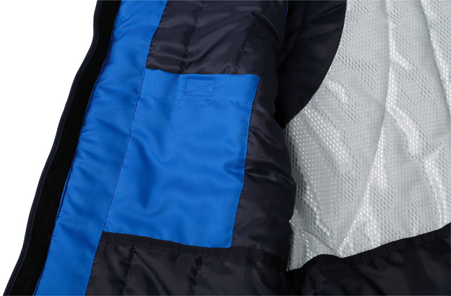 Oberstoff: 100% Polyester, Futterstoff: 100% Polyester, Besatz: 100% Polyamid Cordura, Wattierung: 100% Polyester