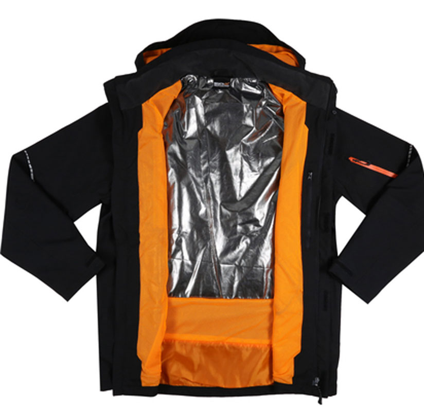 Wasserdichtes und atmungsaktives Isotex-10.000-Stretch-Ripstop-Gewebe, zertifiziert nach DIN-Norm EN343 3:2, versiegelte Nähte und eine wasserabweisende DWR-Oberfläche (Durable Water Repellent) für Schutz bei jedem Wetter, Thermo-reflektierendes Futter für Wärmebeständigkeit, Die RFID-Schutztaschen blockieren Scanner, schützen Ihre Daten und verringern das Risiko von digitalem Diebstahl, verstaubare Kapuze im Kragen verborgen, zwei untere Taschen mit Reißverschluss, eine wasserdichte Tasche mit Reißverschluss und eine wasserdichte, Brusttasche mit Reißverschluss, mit Sturmklappe beschichteter CF-Reißverschluss, versteckter Reißverschluss im Futter für Veredelung, verstellbarer Kordelzug am Saum, reflektierende Details an den Ärmeln und am Rücken, 40 °C waschbar